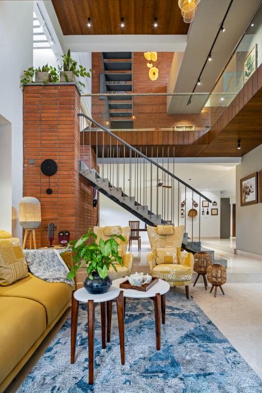 These materials have great character and personality and get better with time. Not only do they bring warmth to the spaces, but they also ensure that the house blends effortlessly with the surrounding landscape. Exposed bricks used extensively develop a unique character over time with minimum Maintenance.