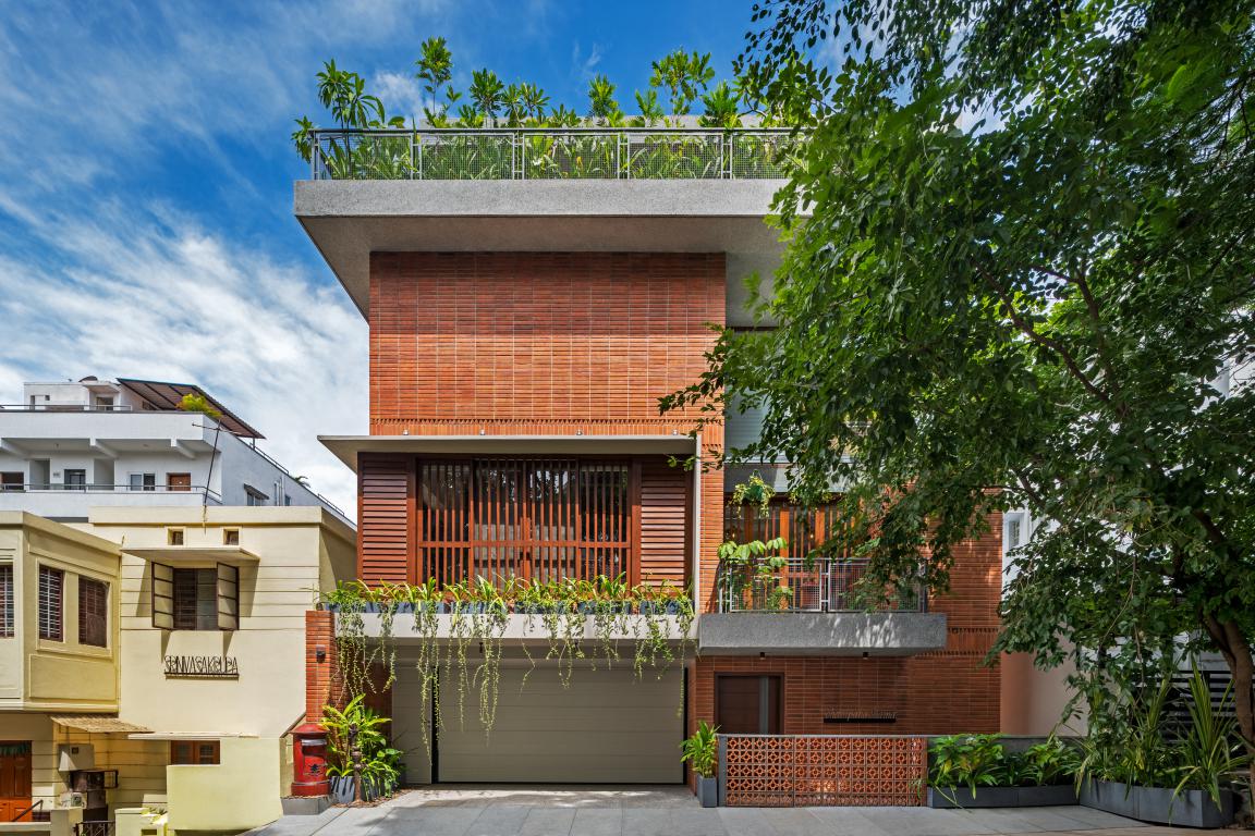 A Rustic Yet Futuristic Parametric Brick Facade Wraps This Residential Home in Coimbatore by Murali Architects