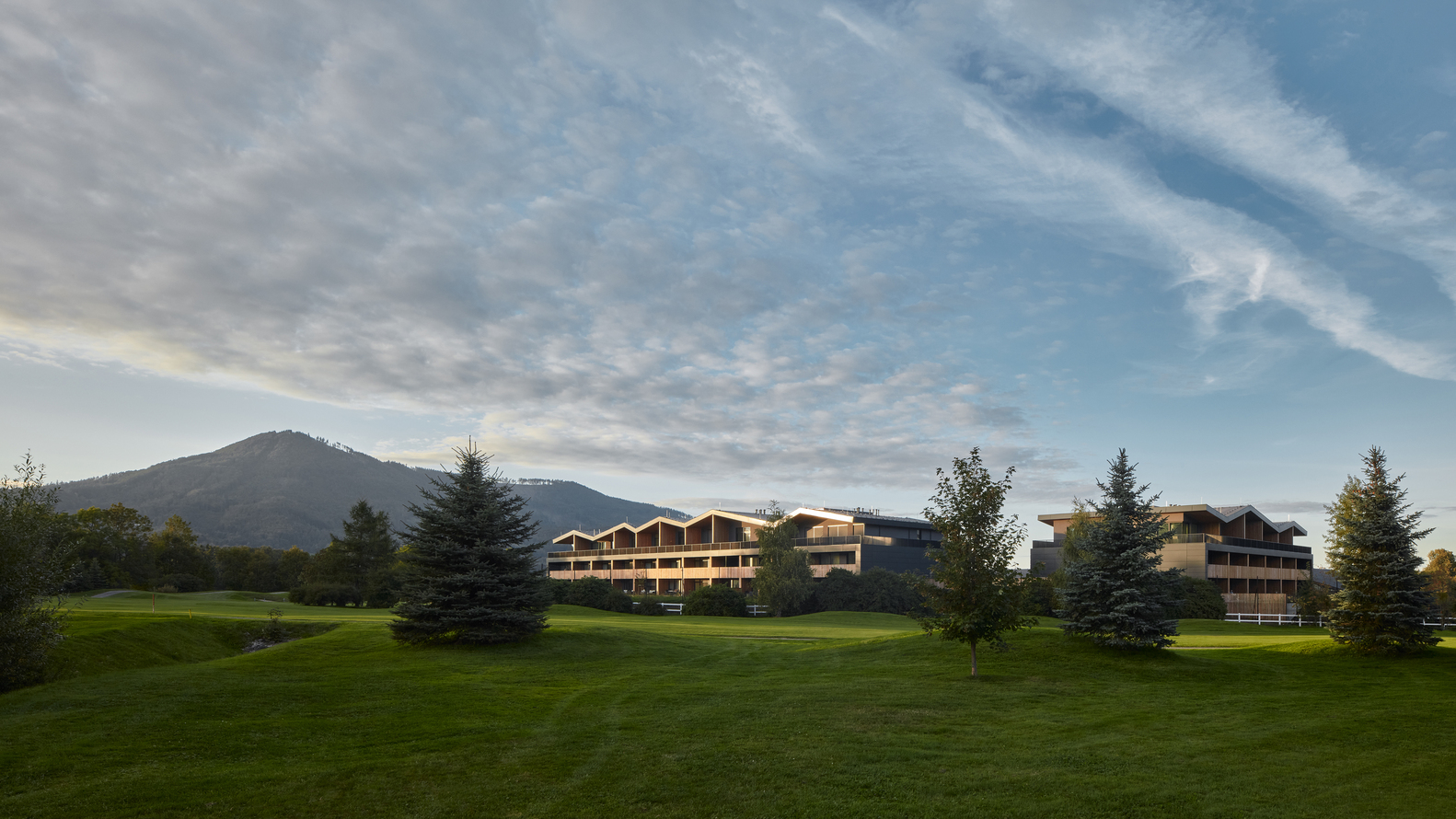 Nestled in the golf and equestrian complex of the Celadná village of Czech Republic and surrounded by the picturesque landscape of the Beskydy Mountains, 'Tee House' is a resort spa residence designed by CMC Architects. The upper 'attic' part of the buildings feature the striking architectural element of recessed overhangs and folding roofs, echoes the respite of the nearby hilly landscape. The firm employed Siberian larch, dark grey plaster, dark grey Alucobond and exposed concrete to design the volumetric design of the buildings. SURFACES REPORTER (SR) brings more information about the project below: