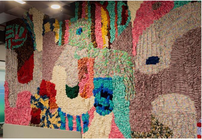 An art installation made of material from sample fabric pieces left behind at the conceptualization phase of fashion