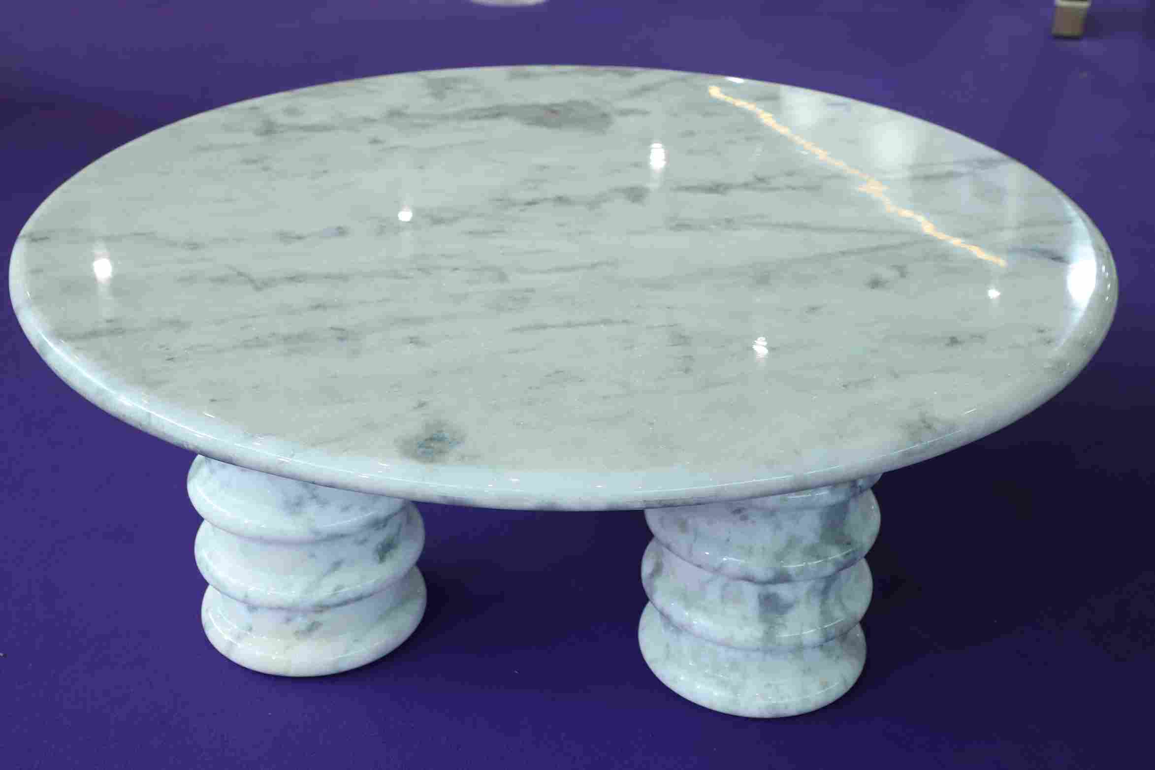 The Sculpted Coffee Table with a petal-shaped ivory top and metallic accents make perfect for contemporary interiors.