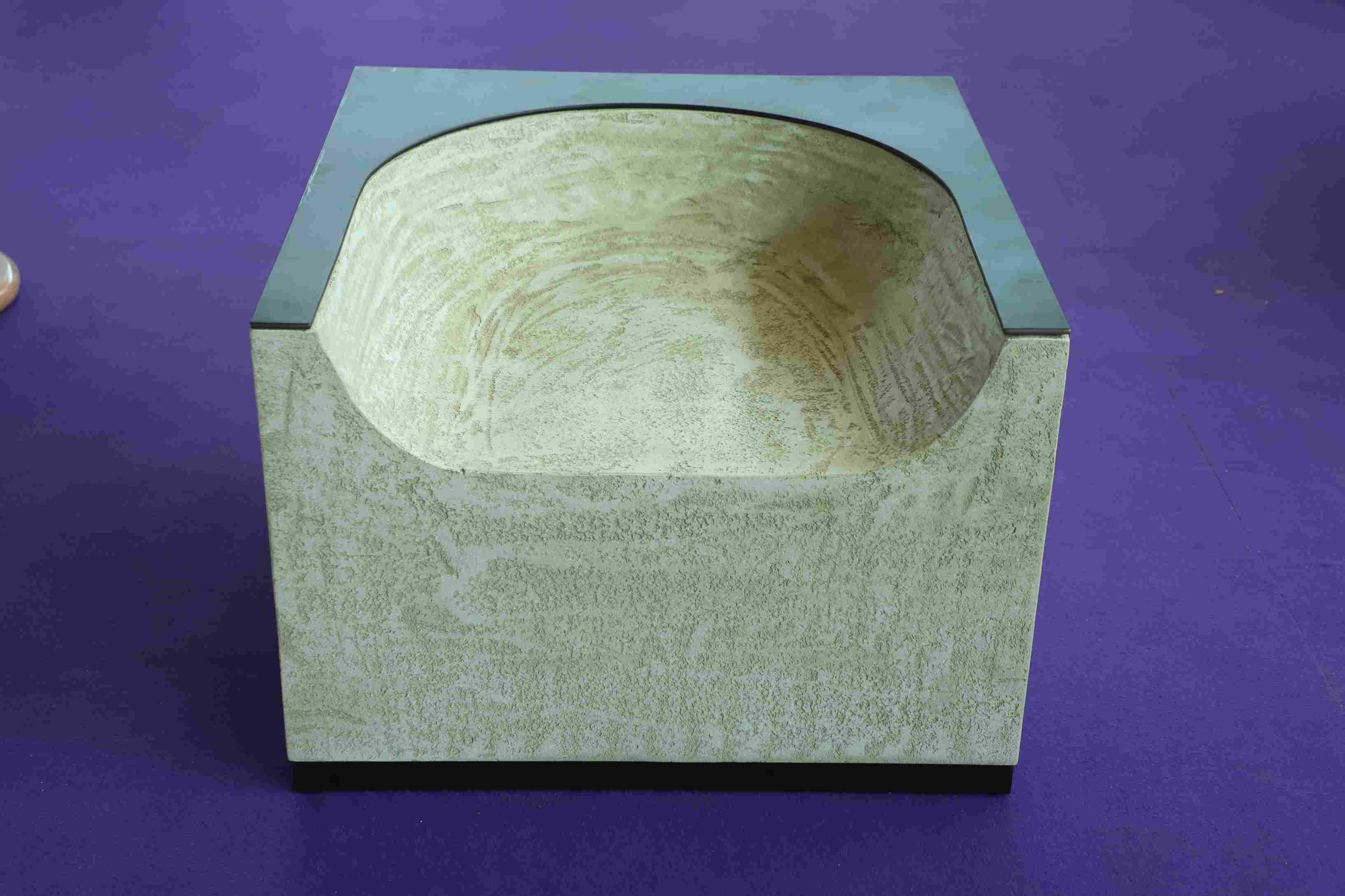 A sculptural coffee table by Devyani Gupta blended wooden veneer with sculpted concrete legs, thus creating an ode to artisanal craft and organic form.