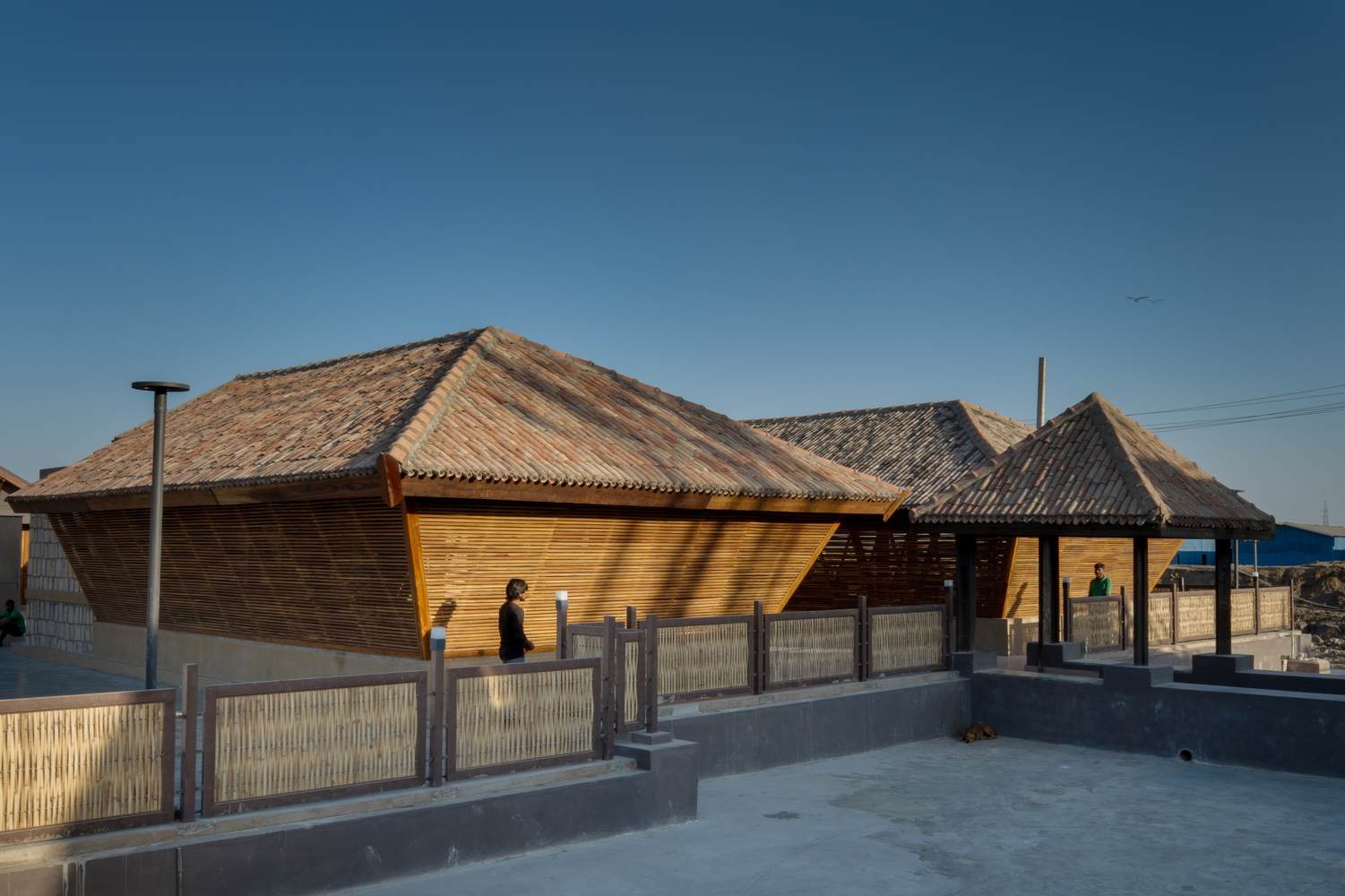 Constructed from upcycled timber salvaged from ship-breaking yards, the roof exemplifies the smart reuse of materials that still have structural and aesthetic value.