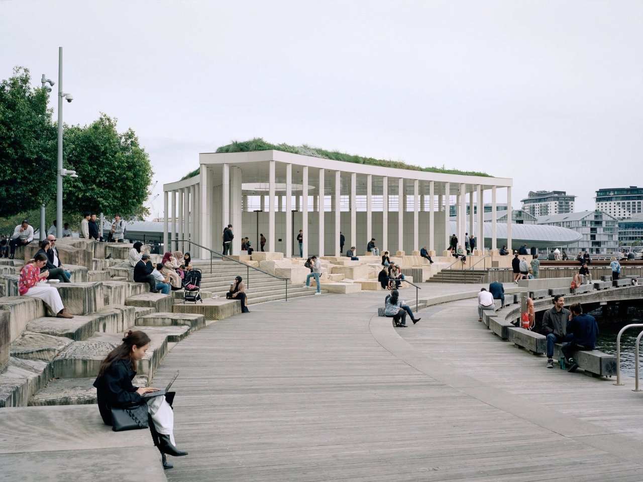 This inventive use of recycled material not only gives the pavilion a distinctive aesthetic but also ties it symbolically and ecologically to the harbour ecosystem.