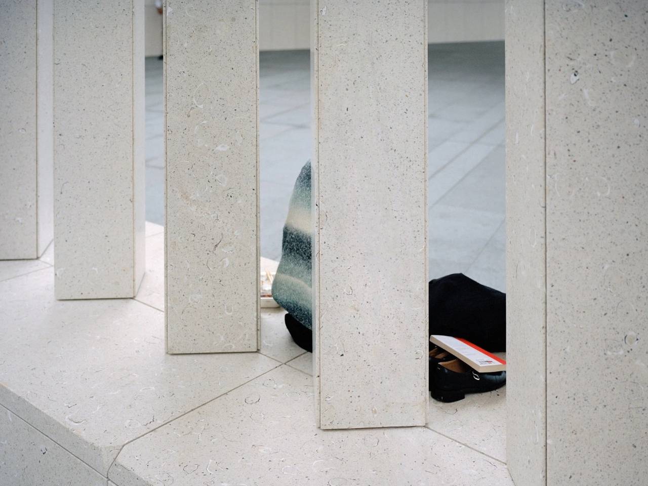 The oyster terrazzo, used across the columns, ceiling and fascia, reinterprets centuries-old architectural traditions of ornamentation through a modern, sustainable lens.