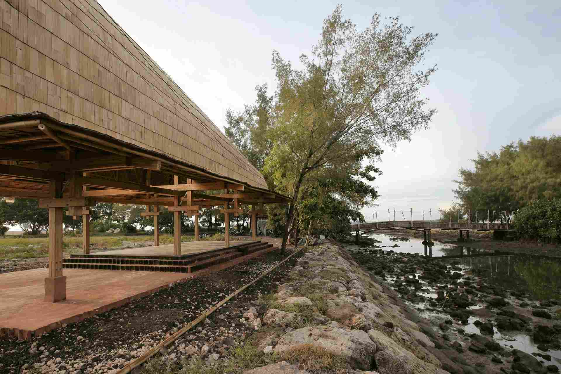 Located along the shoreline of Mertasari Beach in Denpasar, Bali, the pavilion stands on what was once a neglected parking lot.