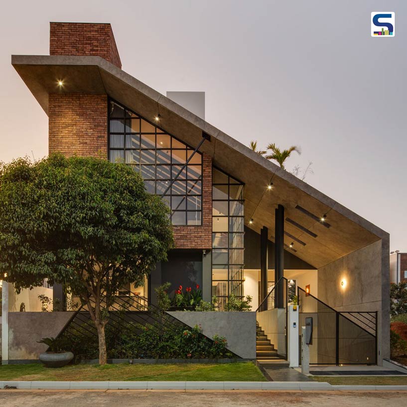 Kodalli’s Happy Place by Ashwin Architects residence is envisioned as a serene, contemporary haven set amidst the outskirts of Bengaluru, Karnataka. Designed for a family that cherishes togetherness as much as personal tranquility, the home brings architectural boldness and emotional warmth into a single narrative. Its exterior immediately establishes its identity with a dramatic sloping concrete roof paired with slender steel-framed windows that forms a sculptural silhouette as it stands confidently yet harmoniously within the landscape. Natural materials, lush green trees and thoughtfully planned openings come together to provide shade, privacy and a whimsical play of filtered daylight. Know on SURFACES REPORTER (SR) how every space, across the three levels, is crafted to support the varied rhythms of family life.