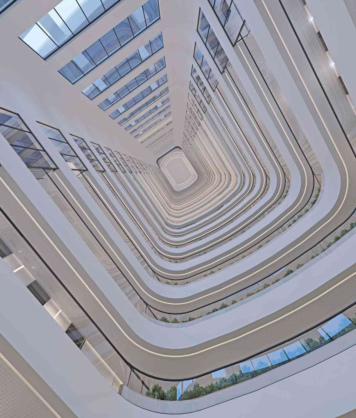 The facade plays a critical role in emphasising the tower’s rotational motion. Its articulated elements accentuate the twist while also improving the building’s environmental performance. The facade system allows abundant natural light to permeate the interior workspaces, reducing the need for artificial lighting and enhancing user comfort. The adaptable floor plans have been designed to accommodate a wide variety of office requirements, right from agile startups seeking flexible layouts to established financial institutions requiring structured spatial arrangements, thereby enabling tenants to customise their environments with ease.