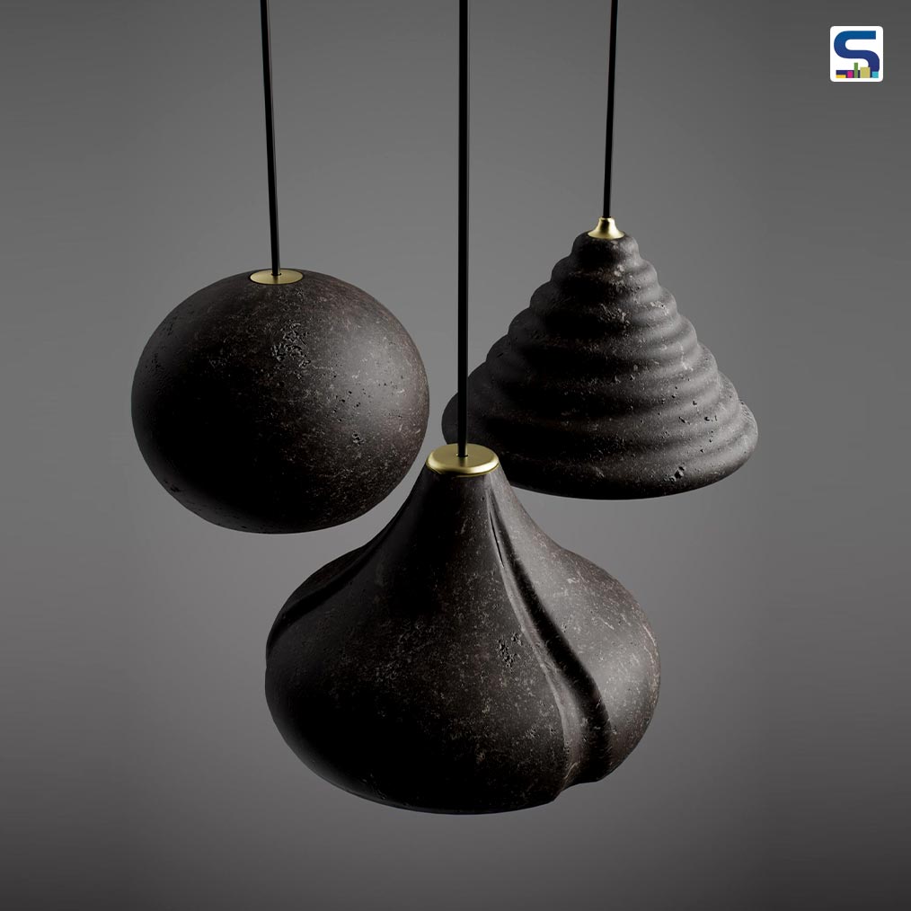 The restrained geometry of the lamps ensures that they can be arranged individually or in clusters, maintaining visual coherence while still offering variation across the series. The composite material was developed by Ranieri, a Naples-based company located near Mount Vesuvius and known for its expertise in volcanic stone. Traditionally, Ranieri processes solid lava blocks into architectural surfaces and furniture using precision-controlled machinery. However, this process generates a considerable amount of stone waste in the form of chips and fragments. Seeking a more sustainable approach, the company started experimenting with ways to reuse these remnants, eventually developing a method to pulverise the lava into powders of varying grain sizes and combine them with an organic binding agent.