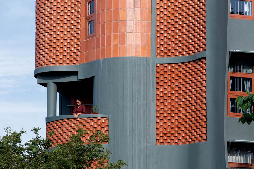 Designed as an ode to the vernacular homes of Karnataka, the facade composition balances tradition with contemporary restraint. Thoughtfully sourced and executed, semi-circular brick elements lend the exterior a rhythmic curvature and a distinct textural depth. Beyond aesthetics, these bricks offer thermal insulation while softening the building’s visual mass.