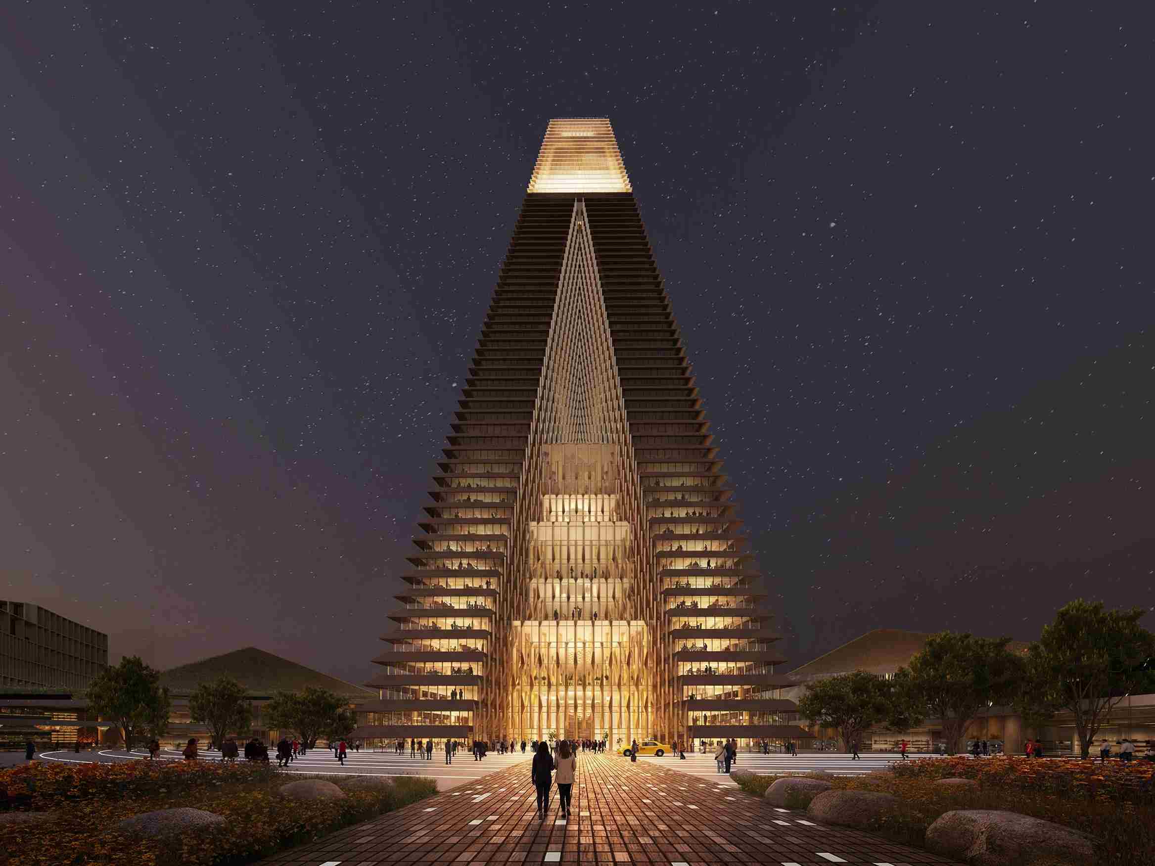 The proposal, which encompasses a total floor area of 276,800sqm, features largely glazed facades on both towers. A striking architectural feature common to both structures is the inclusion of large central atria, which serve a dual purpose of drawing natural daylight deep into the interior floor plates and framing panoramic views of the surrounding mountain landscape for occupants within. To address the climatic demands of the region, SOM has also incorporated high-performance facade systems and integrated shading strategies into both buildings, minimising solar heat gain and contributing to the overall energy efficiency of the complex.