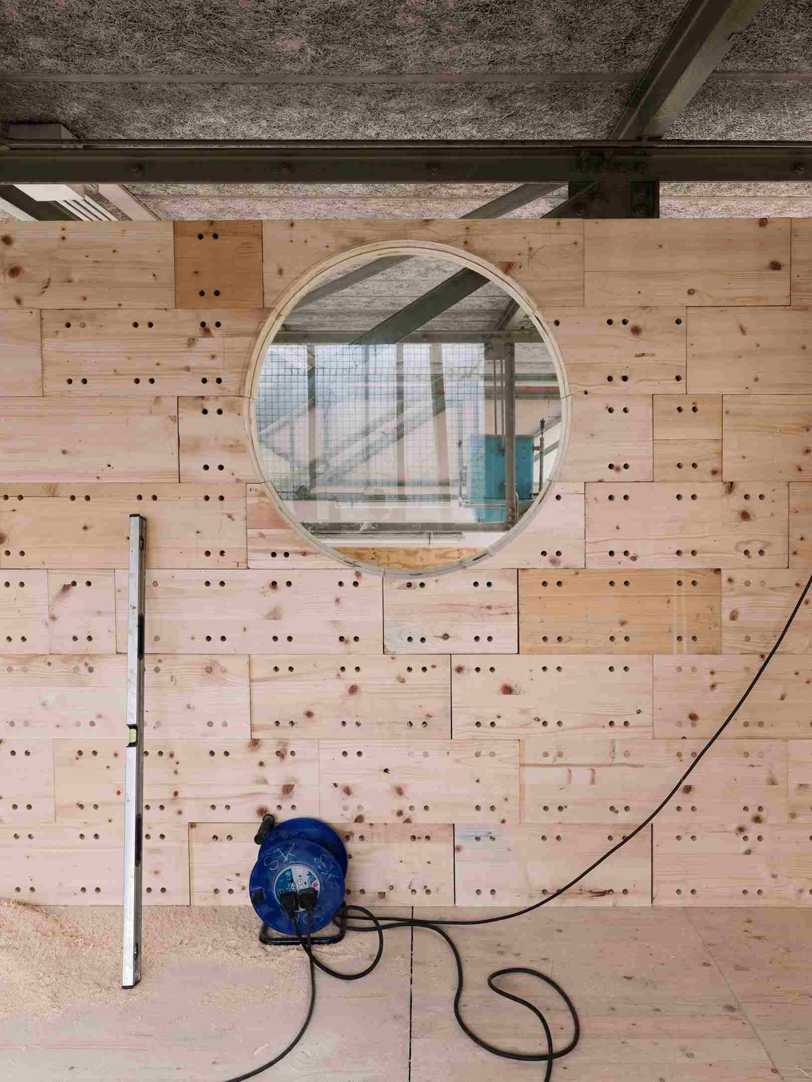The second half of the warehouse is devoted to processing materials in accordance with client requirements. This includes cleaning, respraying, cutting and preparing salvaged components so they are ready for redistribution and reuse in new building projects. Beyond its core logistical function, Tipping Point East also serves as a community resource. The hub includes a community workshop, event and training spaces, an electrical testing facility, a collective office environment, a materials store operated by Resolve Collective and an assembly space capable of accommodating large-scale group construction builds.