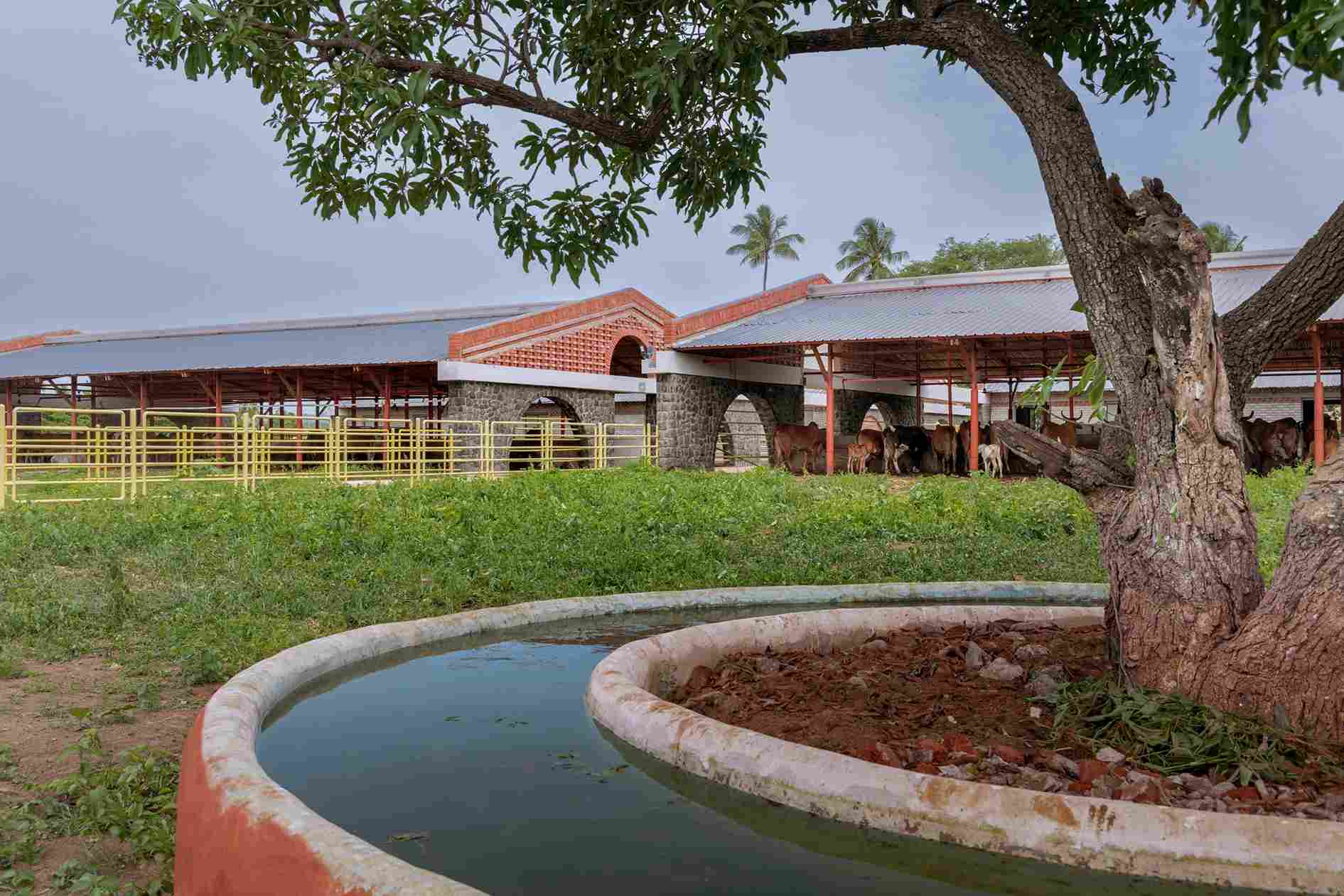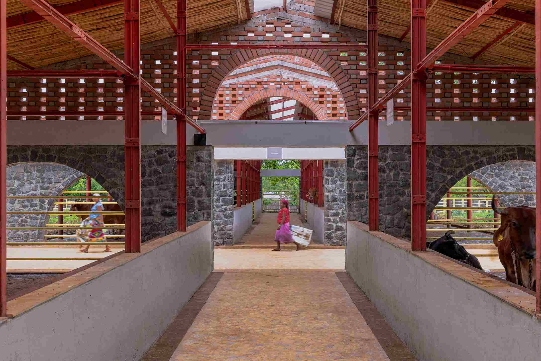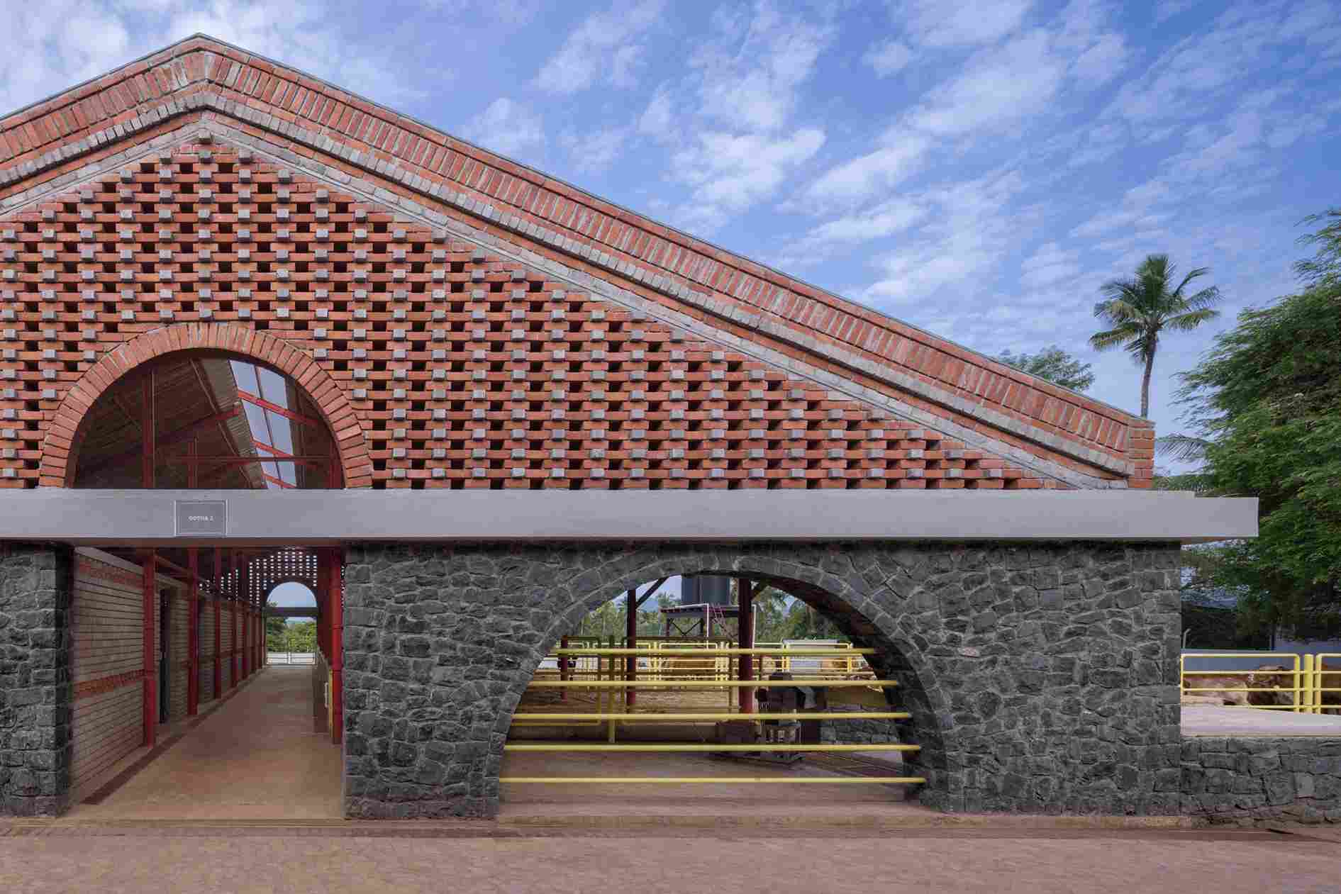 According to the studio, much of the design language was borrowed from vernacular agricultural structures and time-tested material practices that have long responded to local climate conditions. Techniques such as arched masonry walls and porous brick screens draw from inherited regional knowledge while being carefully adapted to meet the demands of a contemporary cattle facility.