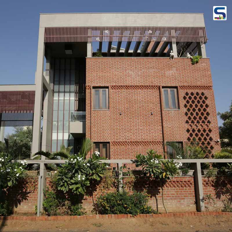 Situated in a municipal layout of Vadodara city, this delightful Brick House has been designed and constructed by K.N. Associates for Hemal Shah and his family of five. Narendra Joshi, the founder and principal designer of the architectural practice, optimized natural materials such as Kota stone, wood, granite and exposed brick to give an earthy touch to the house. He envisioned an extrovert form for the home where the solid mass of brick stands still and bold from the exterior while the three sides are covered with green spaces. One of the striking features of the house is its main door that is adorned with intricate wooden carvings inspired by the attractive and flawless heritage doors of Rajasthan. Scroll down to know other splendours of this beautiful residence at SURFACES REPORTER (S.R.):