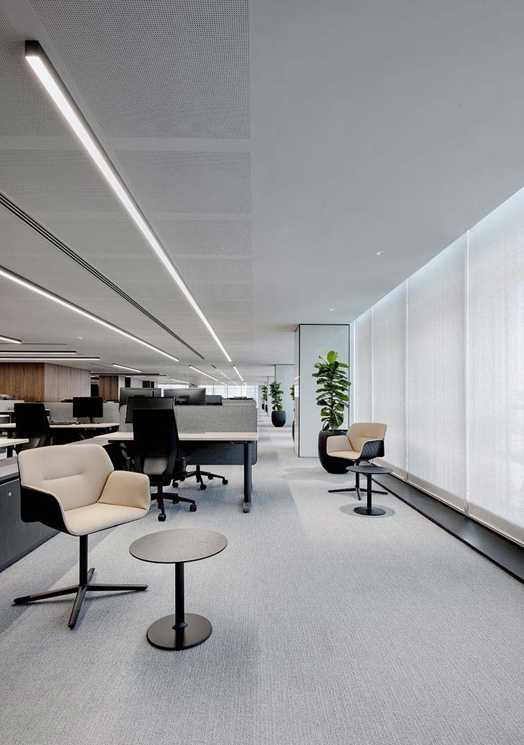 Also, the workstations are high-adjustable with an ergonomic screen. Further, the large part (75%) of the entire workspace is directly connected to outdoor views and biophilia to create a feeling of spaciousness and connection with nature. The design fulfils the requirements of LEED and WELL certification standards.