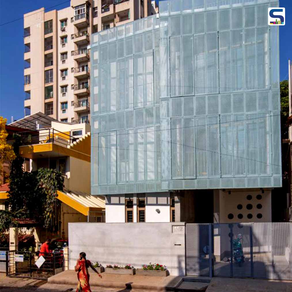 Situated in Bangalore, JP house gives a distinctive look amongst its neighbourhood buildings owing to its perforated metal facade that screens the entire apartment.