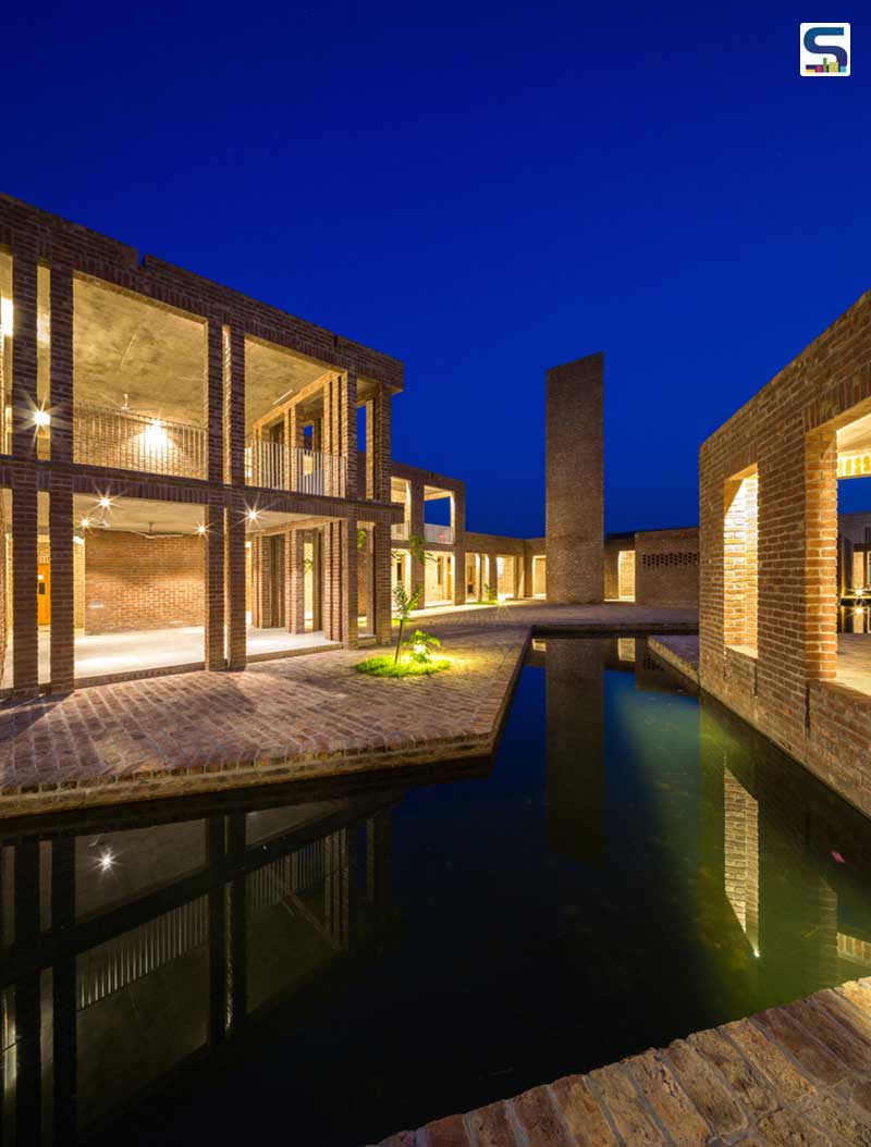 Designed entirely out of local, handmade bricks, the Ka Block of the hospital contains the reception pavilion, offices, library, training/conference rooms, a prayer space and a small cha-shop. United with a three archway, the Kha Block is for private functions and houses the dormitories, the dining pavilion and staff and family quarters. On the other side of the pond, laundry and drying sheds are located. As the entire hospital depends on natural light and ventilation, there is no air-conditioning and the entire lighting is through LED and energy efficient lamps.