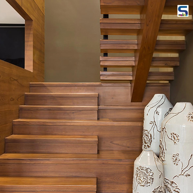Maximising the usage of space without compromising its functionality was a crucial call for Keta and Varun. “It was essential to ensure that all the services were incorporated seamlessly,” they inform, such as, “the arched walls that spans the entire length of the project. It is the most significant spatial inserts for us. It incorporates the structure for the mezzanine, adds in lots of storage and serves as transition planes. They are aptly highlighted and give the grandness of scale to the project.” Walloping their triumph for harmonising their creativity and clients’ preferences, Ketu and Varun believe they were lucky to work with clients whose design sensibilities resonated with theirs. “The end product is an amalgamation of all our ideas put together,” they add.