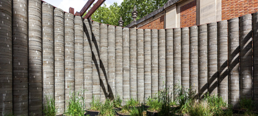 The brick has a vertical gap of steel reinforcement that gives enough strength to it. These circular bricks are stacked on top of one another that giving a huge, column-like appearance.