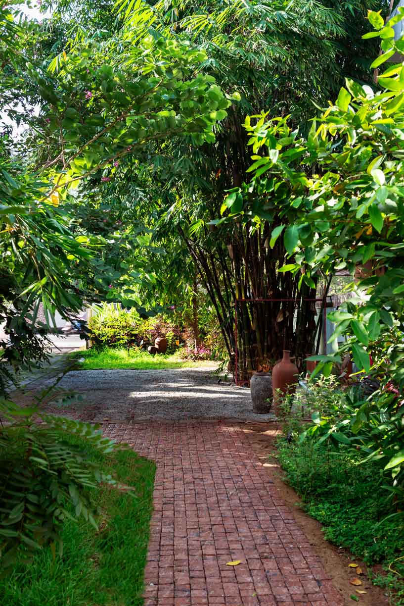 The site had two existing mango trees, which were conserved, while fast-growing trees and flowering shrubs were added. "We experimented with different combinations of groundcover to work on the marshy and sunlit areas of the land. Biodiversity was a core aspect of the landscape design, which made us think beyond the use of fail-safe species," she says.