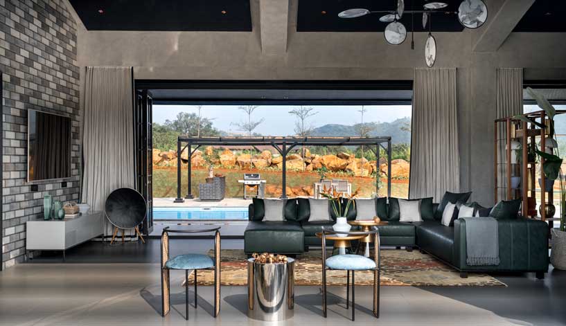 The pristine architectural structure, pool deck, landscaping, interior design and execution, each aspect of the project had been well planned and executed with timelines. Nature and urban contemporary visuals had to blend extremely well into each other. It was the perfect opportunity to create an abode of tranquillity with a colour palette of industrial shades with earthy hues and tones that evoke a sense of calm.