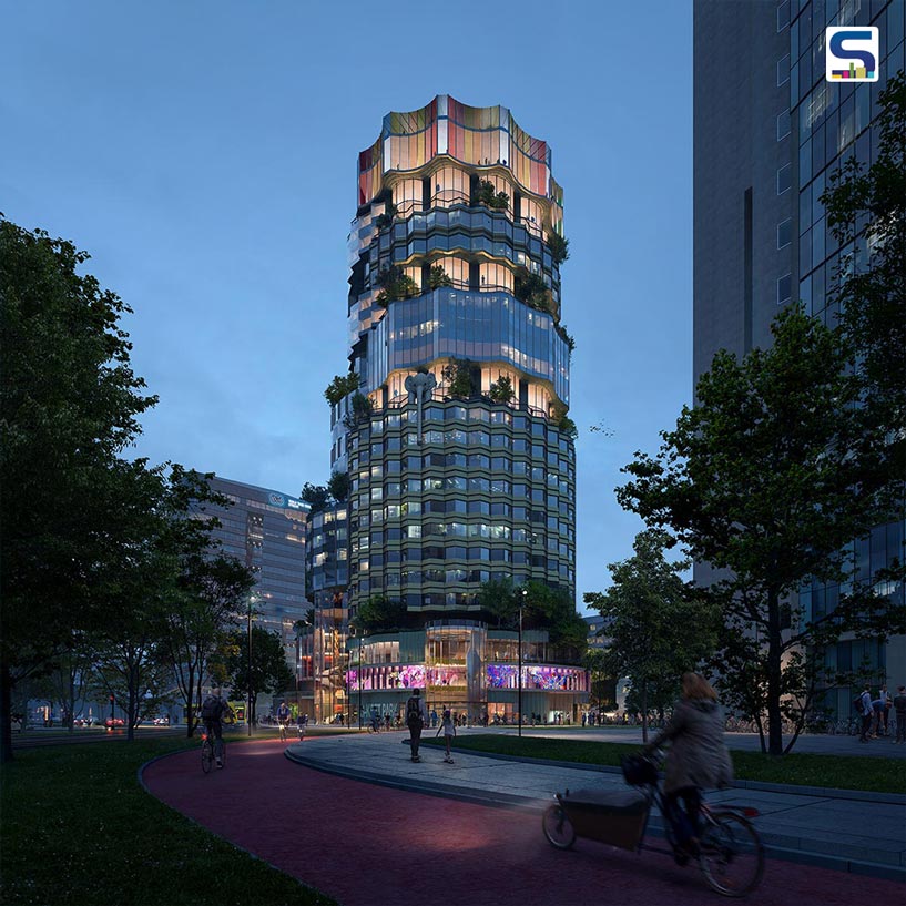 UK practice Heatherwick Studio and Dutch studio Barcode Architects have recently unveiled the design of Oopen- which is said to be the first net Zero mixed-use high-rise building at Utrecht's city centre in the Netherlands. The structure consists of a series of stacked cylindrical forms topped with landscaped terraces. With its unique faceted glass facades, the building design stands out against its surroundings. Read more about the project below at SURFACES REPORTER (SR):