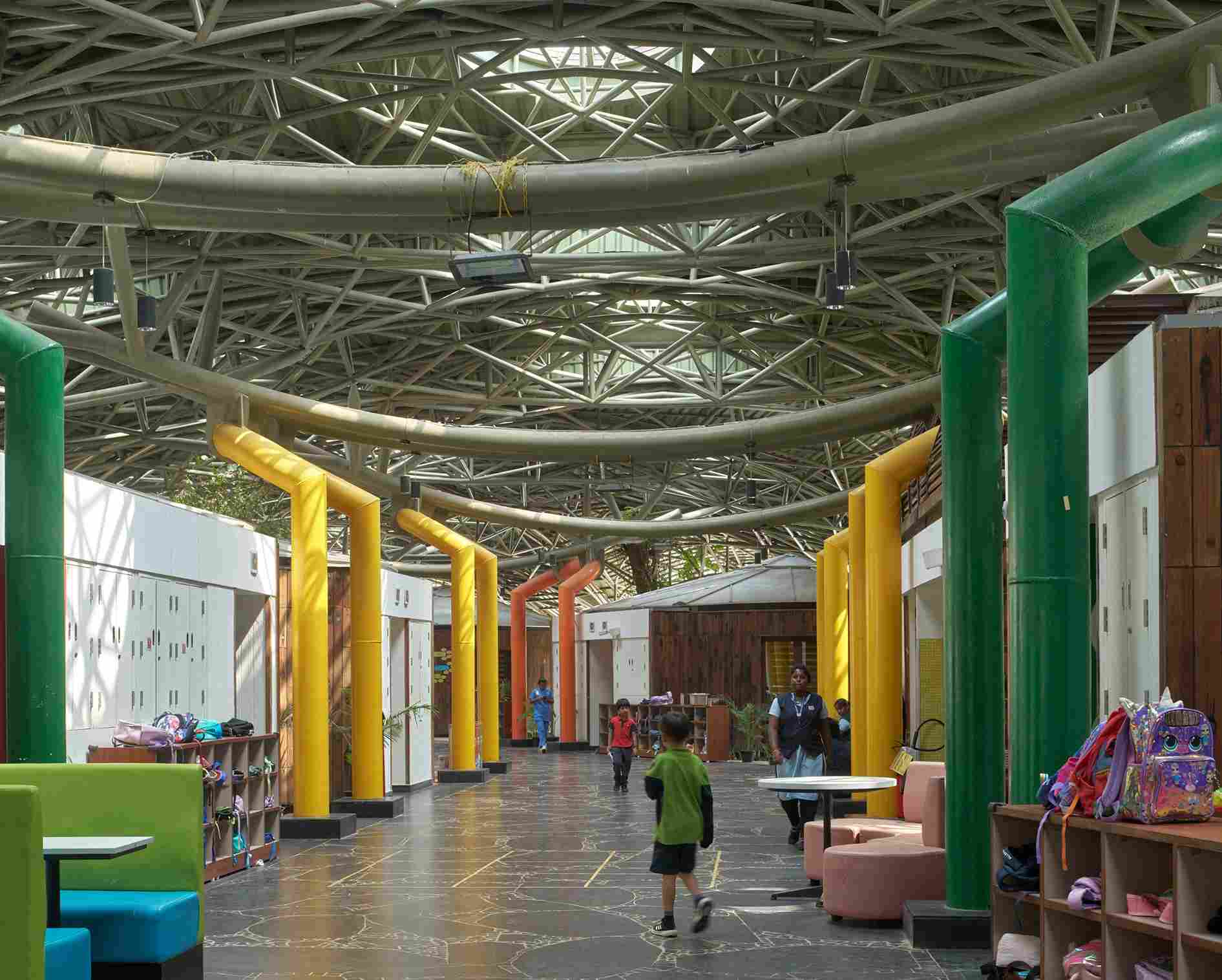 According to the team, the inspiration for the project came from Chennai’s tradition of verandas and semi-covered learning spaces.