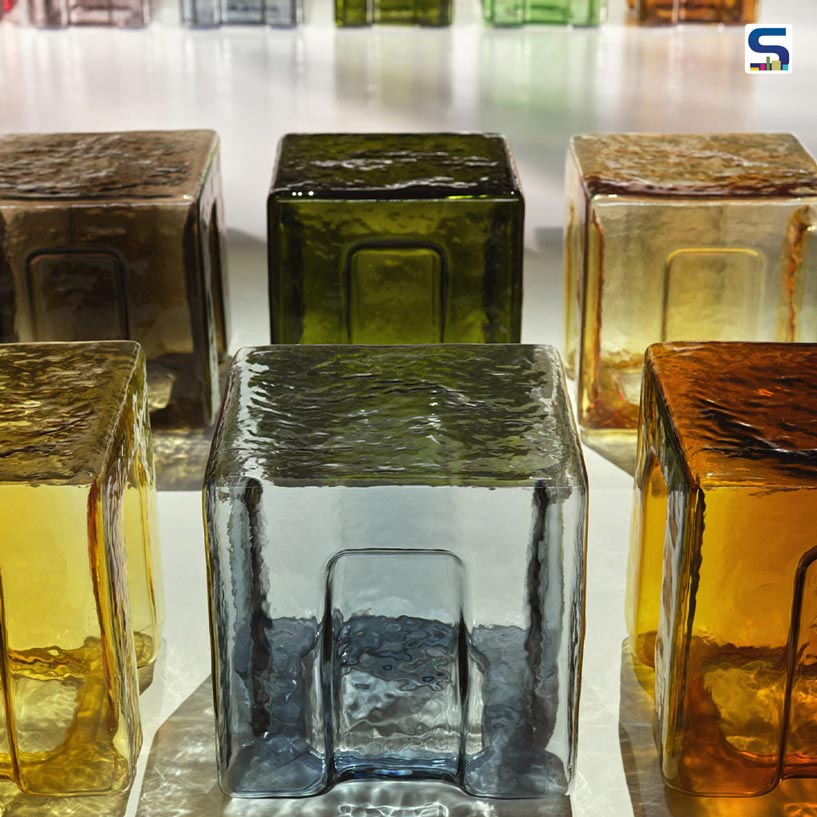 For Bottega Veneta’s Summer 2026 show during Milan Fashion Week, Milan-based design studio 6AM crafted a stunning installation of Murano glass cubes that blurred the boundaries between art, architecture and craftsmanship. Conceived as seating for creative director Louise Trotter’s debut collection, the luminous cubes resembled oversized candies, glimmering in rich, translucent hues and carried an architectural gravitas inspired by carved stone structures. Check out on SURFACES REPORTER (SR) how art meets functionality and creativity transforms into a study of materiality, texture and light.