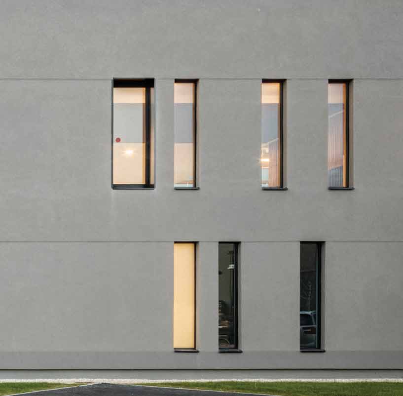 The architectural composition - two offset, interlocking rectangular volumes - maximizes the façade’s visual impact and shields users from direct sunlight. A subtle overhang serves as a sunshade during long summer days, enhancing thermal comfort. The golden façade not only elevates the building’s presence but also reflects a broader ambition tied to excellence and community engagement.