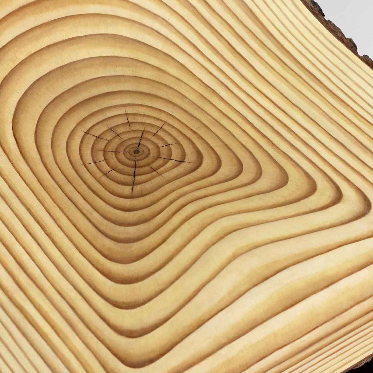 One of the most striking elements of the work is the bark-like detail sculpted from epoxy clay and carefully painted with oils.
