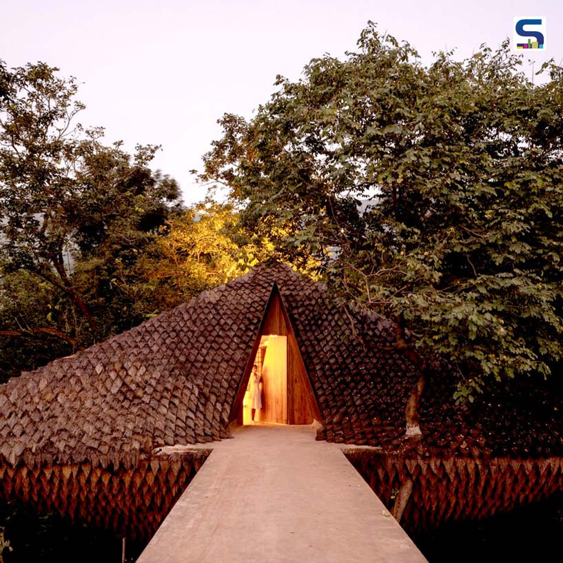 Set in the rugged landscape of Karjat, the Bridge House by Wallmakers emerges from a site defined as much by its natural beauty as by its difficult constraints. The land, framed by hills and thick vegetation, is split by the TATA spillway stream, which has carved a 7m deep gorge and a 30m wide channel straight through the terrain. Any proposed structure had to reportedly overcome a series of immediate challenges, including the two parcels of land needed to be connected without placing foundations within the spillway bed, the bridge had to maintain adequate height for a JCB to pass beneath for cleaning the two streams, and the use of local materials was encouraged even though the surrounding area offered little more than wild grass within a 5 mile radius. SURFACES REPORTER (SR) brings forth how severe site constraints, material scarcity and ecological sensitivity turn into a driving force behind this weekend home.