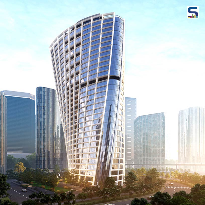 Shivalik Curv by INI Design Studio stands as a powerful symbol of contemporary architecture and forward-thinking design within Gujarat International Finance Tech-City (GIFT City), India’s first fully operational Greenfield smart city. Conceived as an iconic commercial landmark, the project responds to the client’s ambition for a Grade-A office tower offering 47,000 sqm of premium workspace across 32 levels. Rising to a height of 120m, the tower distinguishes itself through its fluid, rotational form, which is an instantly recognizable silhouette that reinforces the dynamic identity of GIFT City. Every aspect of the massing is crafted to embody movement, progress and innovation that will echo the aspirations of the finance and technology sectors that the city is designed to nurture. SURFACES REPORTER (SR) sheds light on this eco-conscious urban office design that celebrates innovation, environmental responsibility and the future-forward spirit of GIFT City.