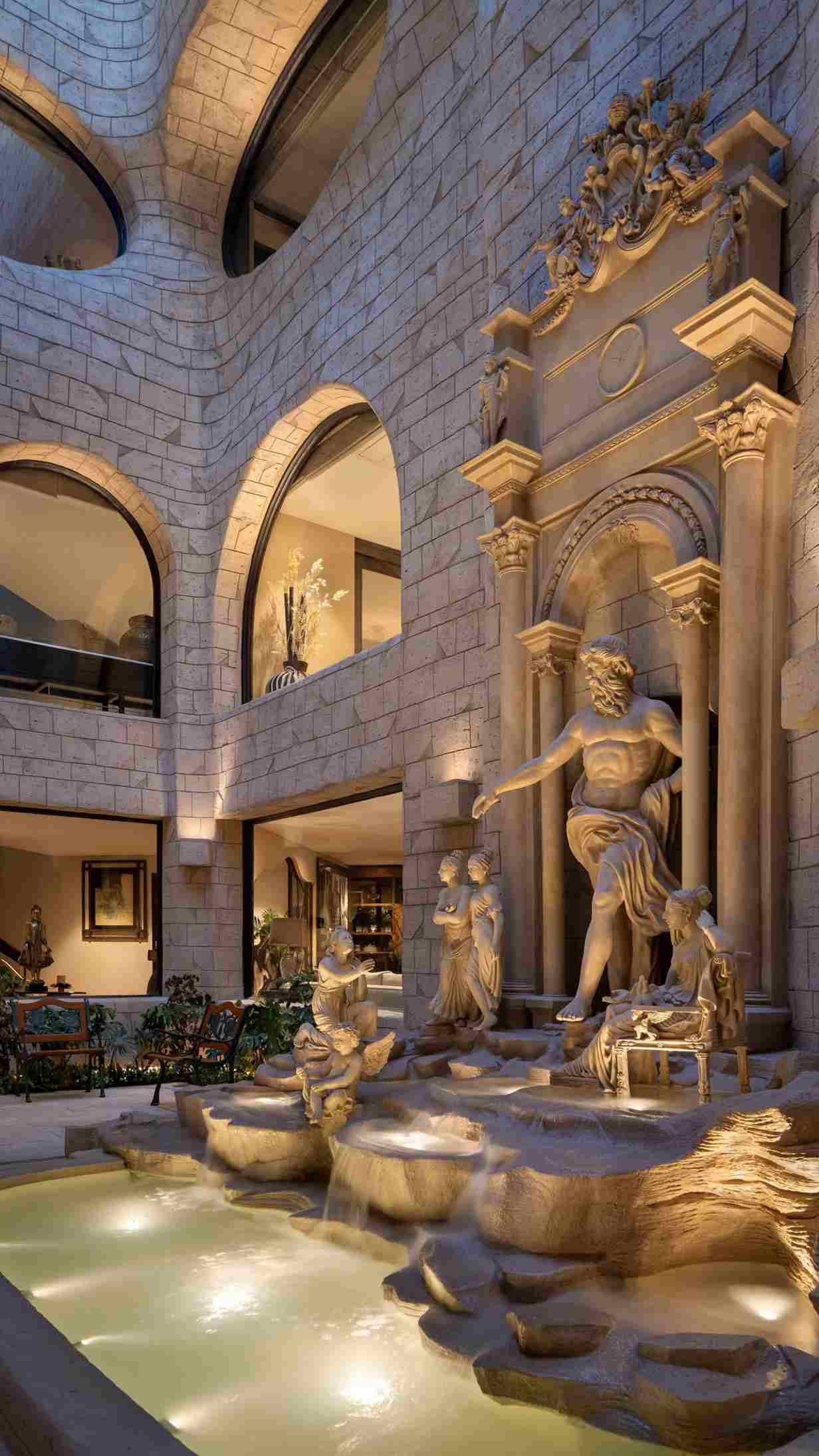 The Fonte D’Amore courtyard project started as an intimate gesture for a husband commissioning a personalized space as a wedding gift for his wife. This sentiment shaped not just the brief but the architectural language itself. The couple’s shared memories became the conceptual foundation, particularly a proposal at Rome’s Trevi Fountain and their fondness for Antoni Gaudí’s expressive, nature-inspired geometries encountered during travels their in Barcelona. These references guided the design toward a fusion of Renaissance order and fluid, Gaudi-esque forms, thereby giving the courtyard its name, Fonte D’Amore, or the Fountain of Love.