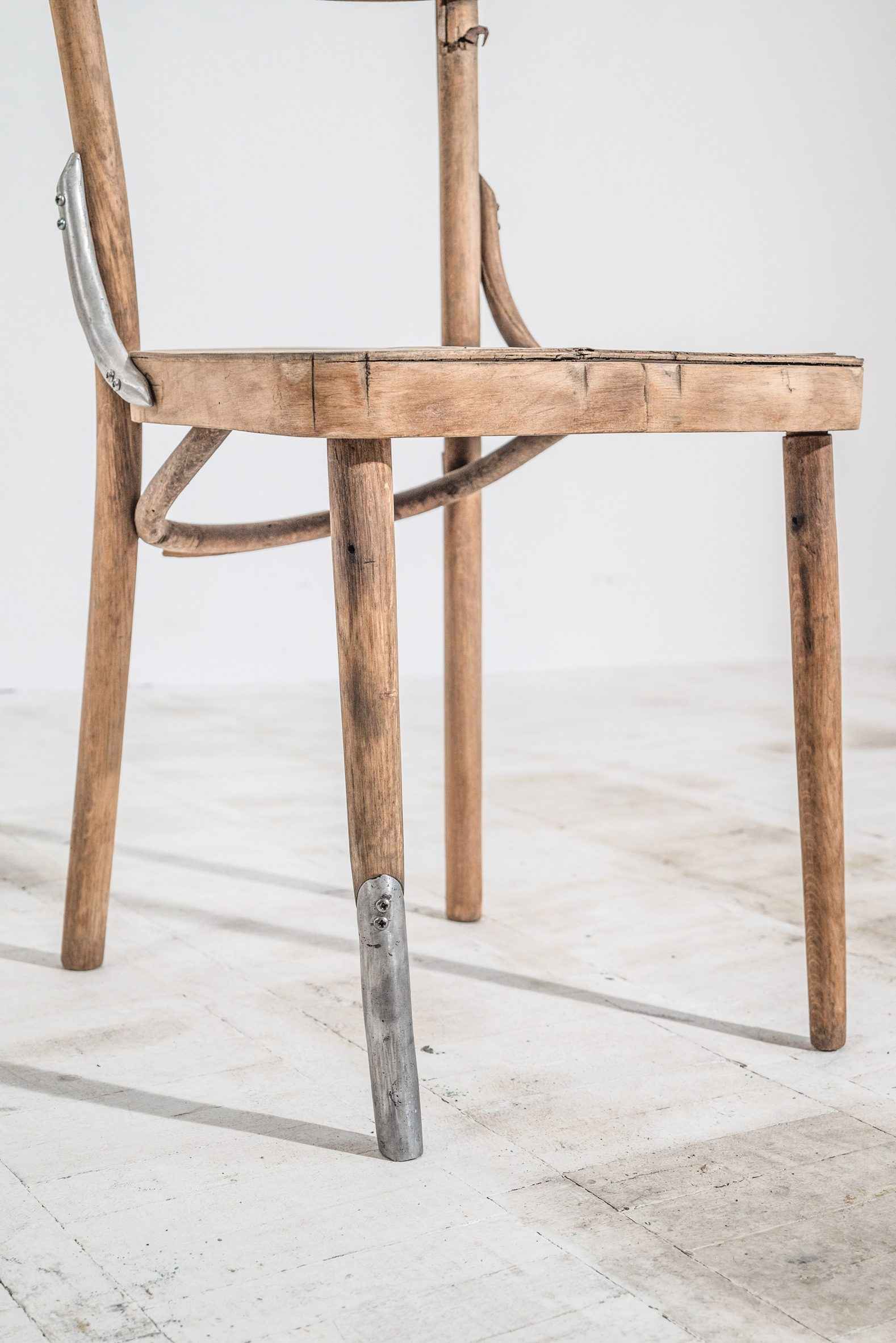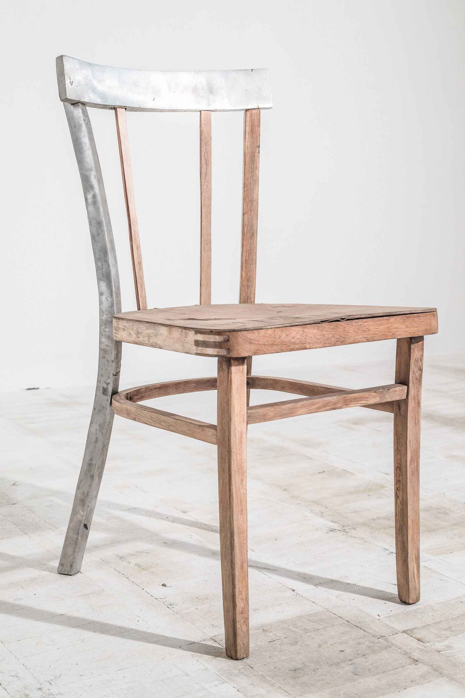 Among the pieces were two wooden dining chairs whose broken sections had been reconstructed using cast aluminium components.
