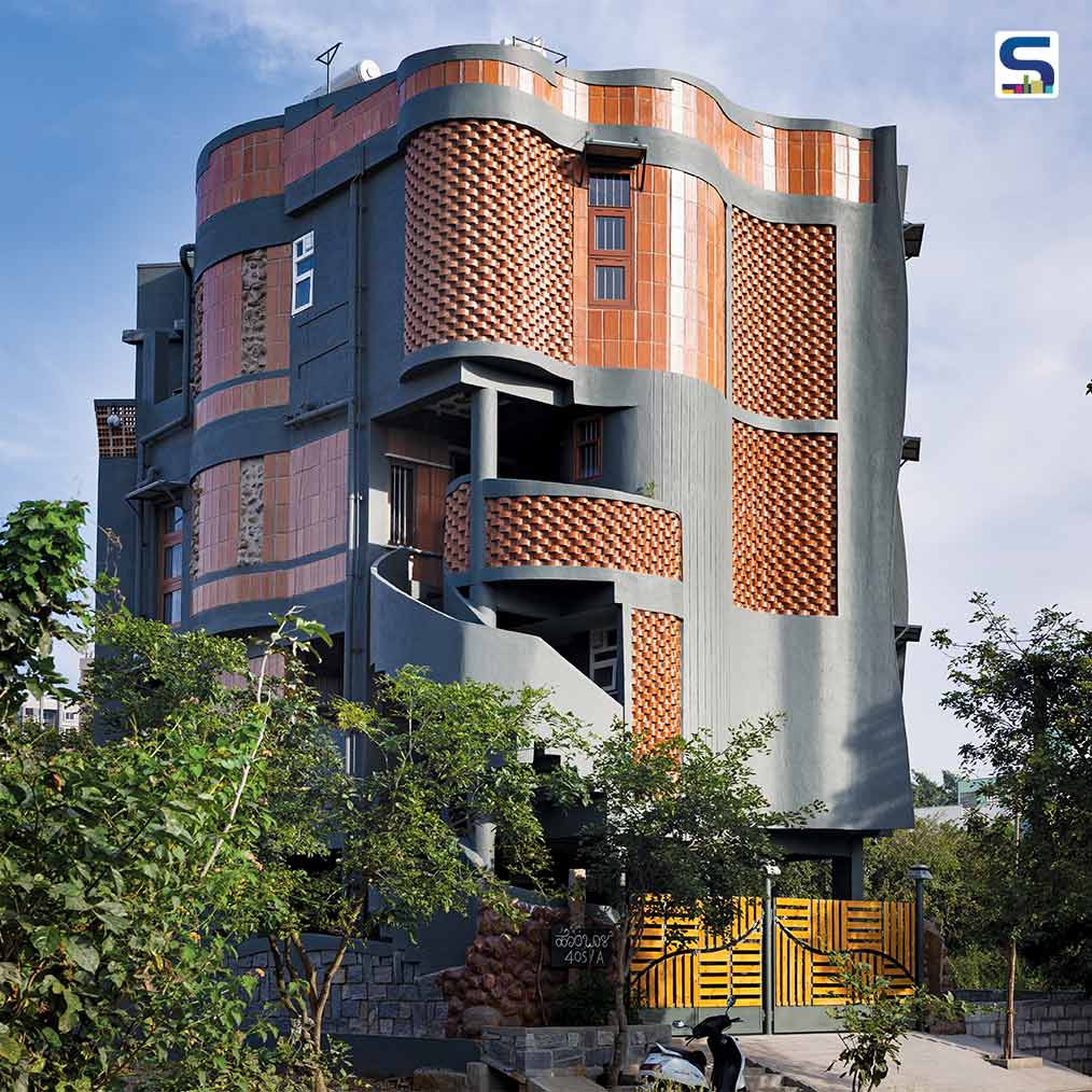 Designed as an ode to the vernacular homes of Karnataka, the facade composition balances tradition with contemporary restraint. Thoughtfully sourced and executed, semi-circular brick elements lend the exterior a rhythmic curvature and a distinct textural depth. Beyond aesthetics, these bricks offer thermal insulation while softening the building’s visual mass.