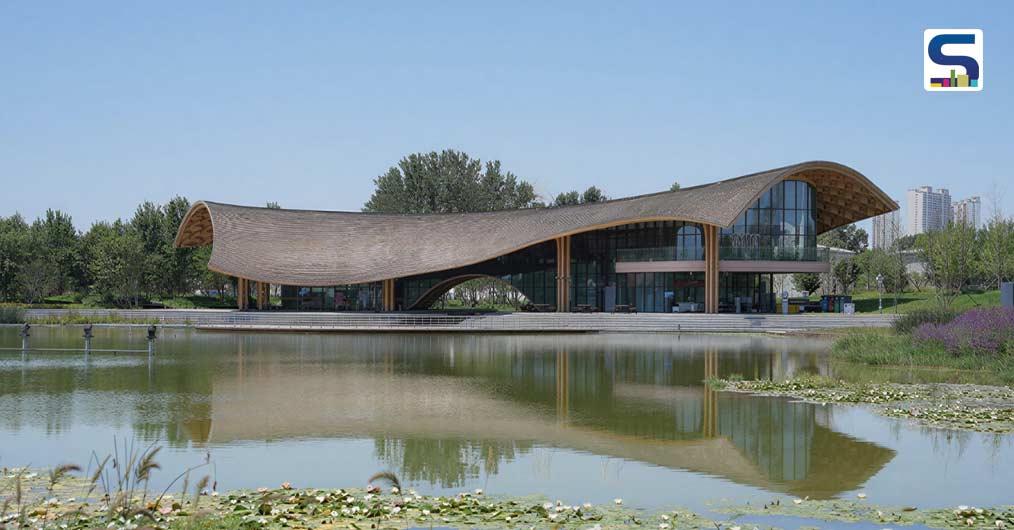 Blossoming wooden columns emerge from the ground and spread outward to support a fluid, continuous roof, all conceived as a single, unified syste...